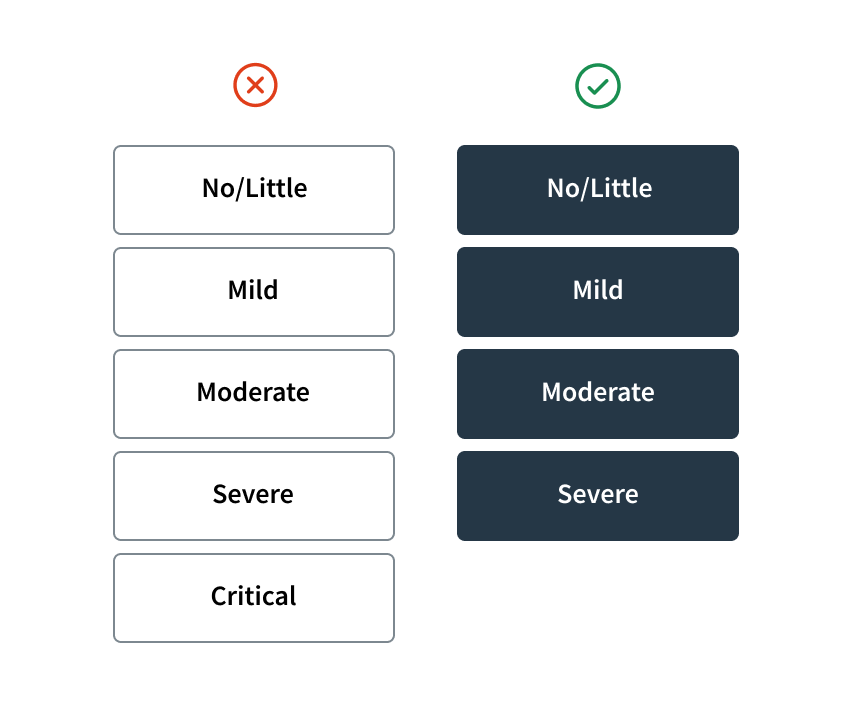 Neurologists preferred 5 symptom severity levels for subtle changes but patients found it hard to choose so I reduced it to 4 levels, as patients were tracking.