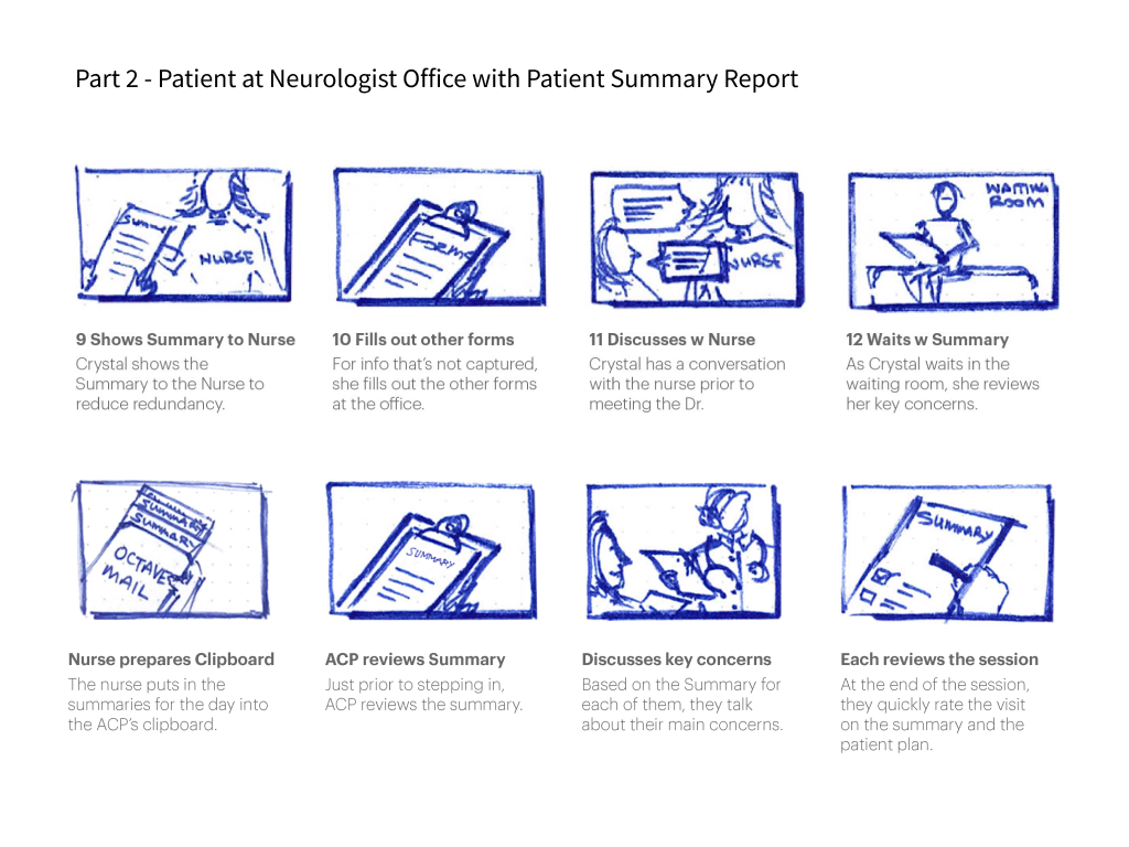 Using quick storyboards, I aligned the team on the key moments and backstage logistics to ensure the report would be used in the exam room.