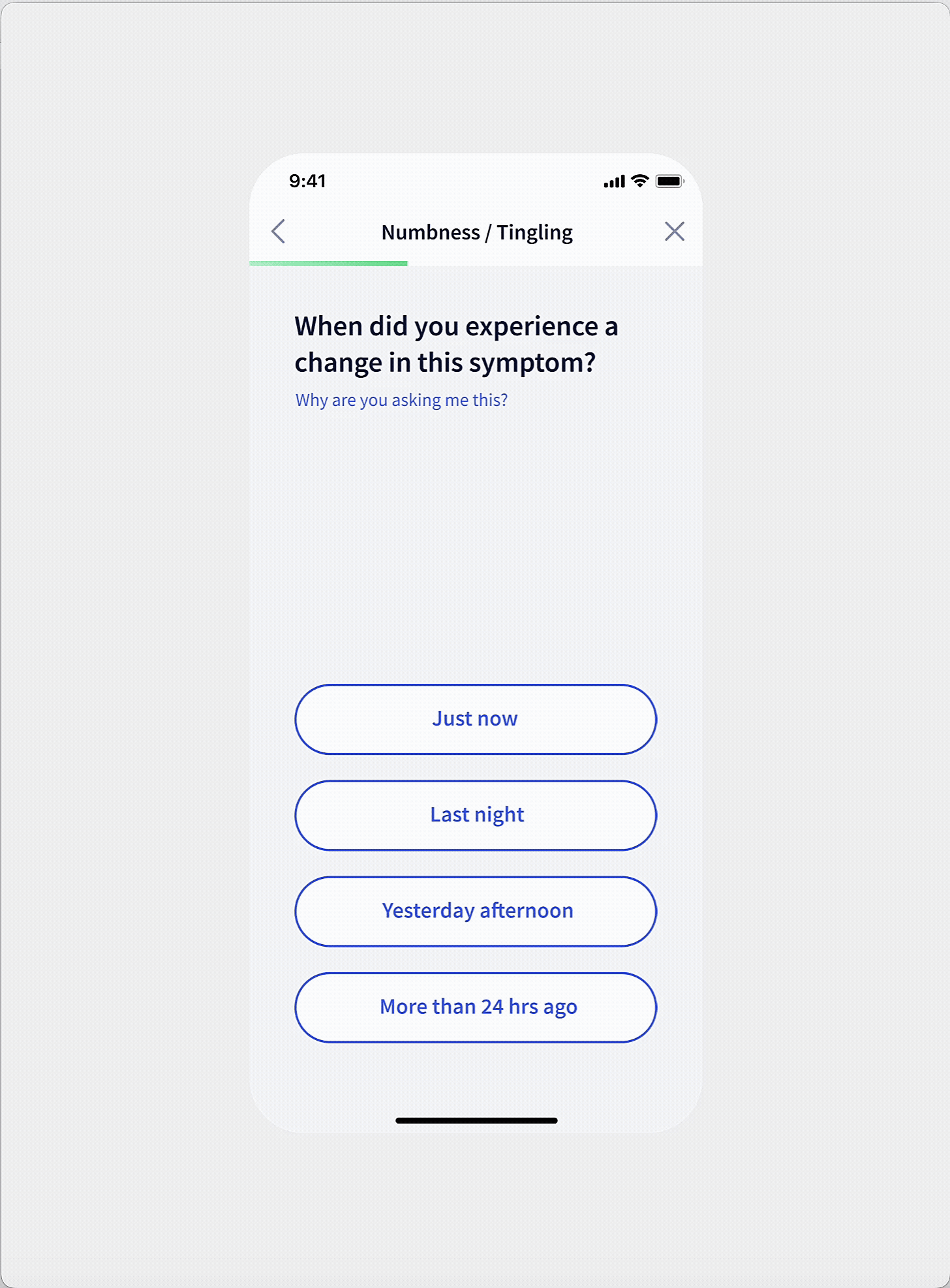This was done in balance with the patient experience so that they did not feel overwhelmed with the number of questions, screens, and options. I kept curating the flow while ensuring the app’s advice was medically sound through the experts.