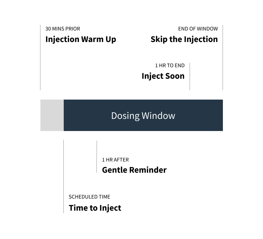 To do better than the phone alarm, I designed staged reminders tied to the injection flow, including warming the meds, at dose time, etc to help patients.